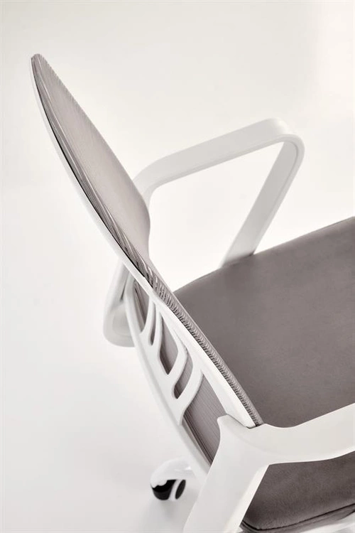 - Fotel młodzieżowy FRODO w kolorze jasny popiel łączy komfort i styl. Tapicerowany miękkim welurem z przewiewnym oparciem z siatki, posiada regulację wysokości i stabilną podstawę na kółkach — idealny do nauki i pracy przy biurku.