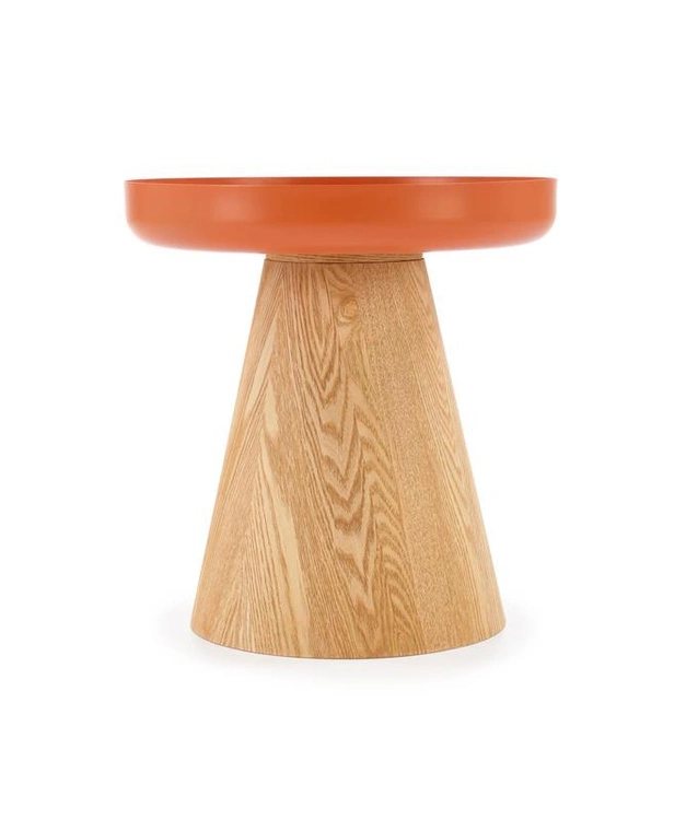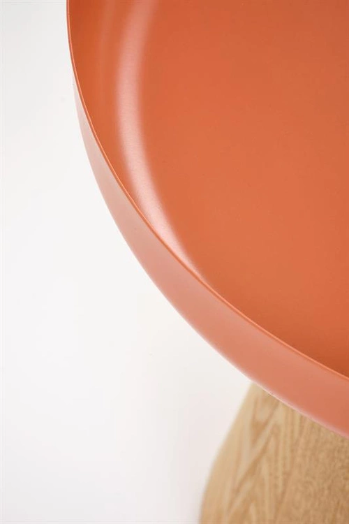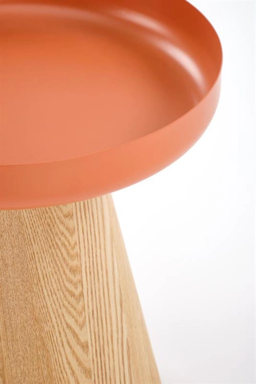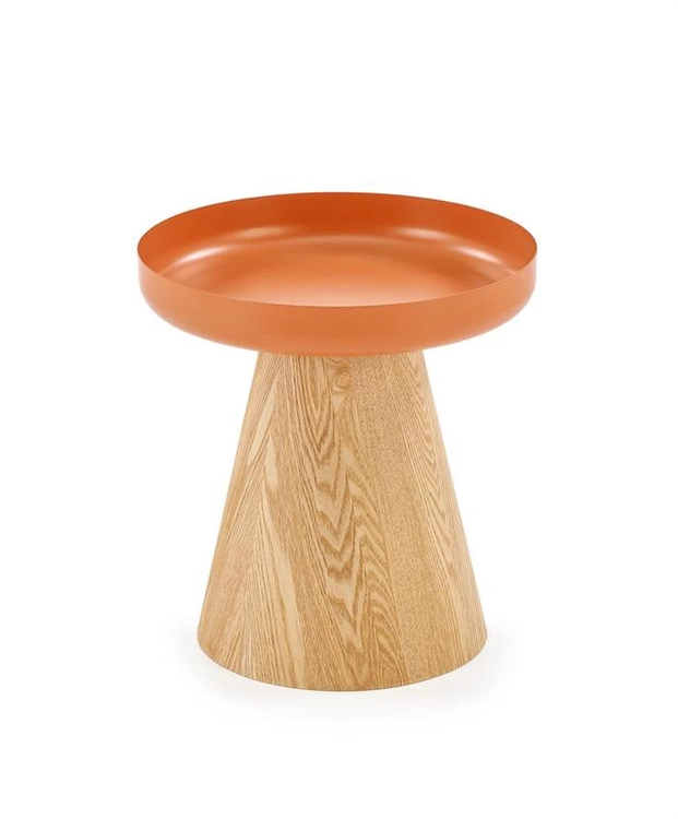 Ława GINA to mebel, który łączy naturalny urok drewna z nowoczesnym charakterem metalu. Okrągły blat wykonany z MDF-u pokrytego naturalną okleiną imituje drewno, wprowadzając do wnętrza przytulność i harmonię. Stalowa podstawa w odcieniu cynamonowym, malowana proszkowo, nadaje całości eleganckiego wykończenia i subtelnego koloru, który pięknie kontrastuje z naturalnym tonem blatu.
