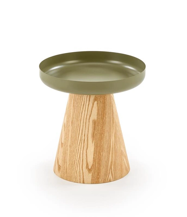 Ława GINA to wyjątkowy mebel, który zachwyca połączeniem naturalnych i nowoczesnych elementów. Okrągły blat wykonany z MDF-u pokrytego naturalną okleiną imituje drewno, wprowadzając do wnętrza ciepło i przytulność. Zielona, stalowa podstawa malowana proszkowo dodaje całości świeżości oraz współczesnego charakteru, tworząc harmonijną i stylową formę.