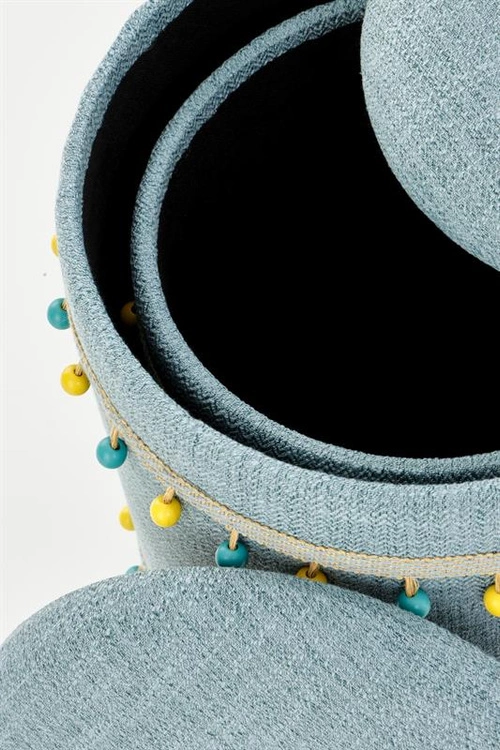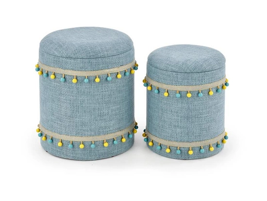 - Zestaw dwóch puf GRADO w kolorze jasnoniebieskim to eleganckie i praktyczne rozwiązanie. Tapicerowane miękką tkaniną, posiadają funkcję pojemnika na drobiazgi. Idealne do salonu, sypialni lub pokoju młodzieżowego.