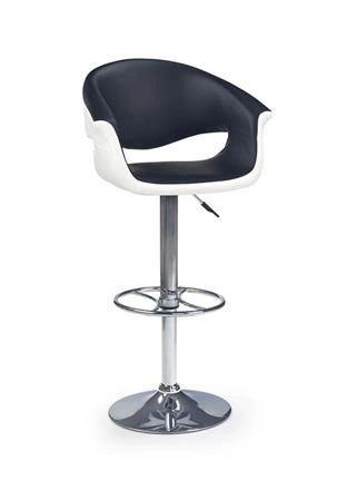 • Hoker H46 to elegancki model łączący biało-czarną ekoskórę ze stalową, chromowaną podstawą. Posiada regulację wysokości i podnóżek, oferując wygodę i styl w kuchni, jadalni lub przy domowym barze.