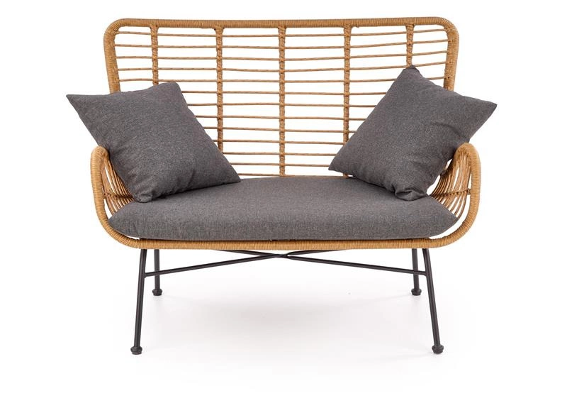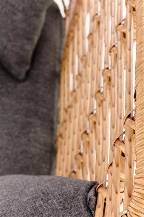 Sofa wypoczynkowa IKARO XL to wyjątkowy mebel łączący naturalne piękno i nowoczesne wzornictwo. Korpus wykonany z rattanu syntetycznego w odcieniu naturalnym nadaje jej lekkości i przytulnego charakteru, a miękkie poduszki w kolorze popielatym zapewniają maksymalny komfort siedzenia. To doskonałe miejsce do relaksu po długim dniu, czy to w salonie, czy w przestrzeni wypoczynkowej.