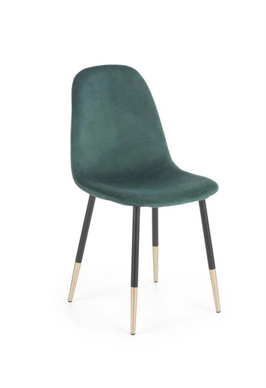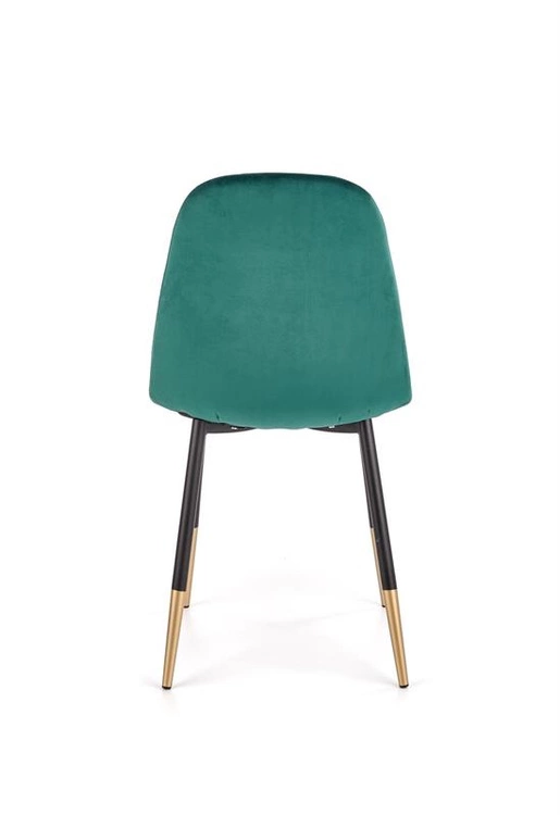 • Krzesło K379 w kolorze ciemnozielonym to elegancki model tapicerowany tkaniną velvet. Połączenie głębokiej barwy z błyszczącą, złotą podstawą nadaje wnętrzu luksusowego charakteru. Idealne do jadalni, salonu lub stylowej restauracji.