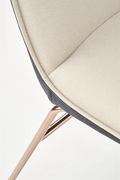 Krzesło K390 kremowe z ciemnopopielatym akcentem i złotą podstawą – elegancja w nowoczesnej formie