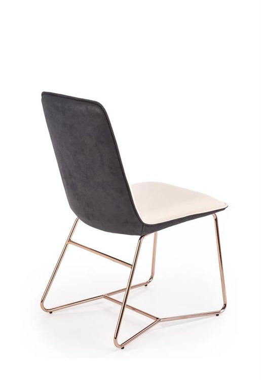 - Krzesło K390 w połączeniu kremowej tkaniny, ciemnopopielatej eco skóry i złotej podstawy to wyjątkowy model, który łączy elegancję z funkcjonalnością. Idealnie wpisuje się w nowoczesne i glamour wnętrza, dodając im stylowego charakteru.