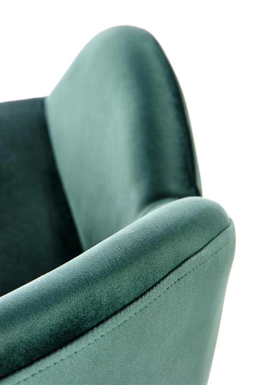 - Krzesło K480 w kolorze ciemnozielonym to połączenie aksamitnej tkaniny velvet i solidnej metalowej podstawy. Jego głęboki kolor i miękka forma nadają wnętrzu elegancji, tworząc idealne miejsce do komfortowego wypoczynku.