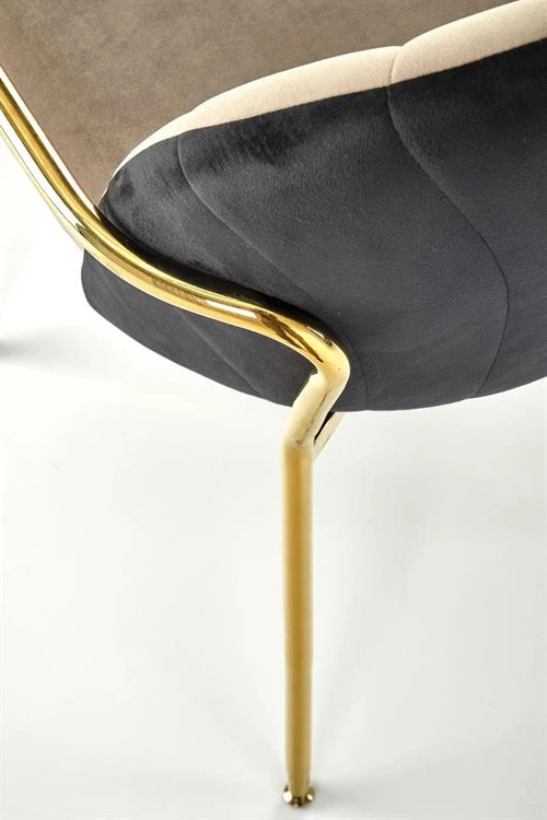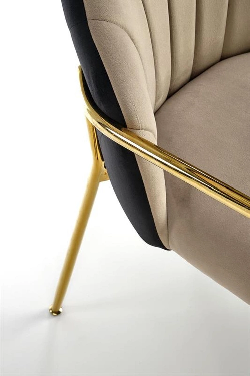 Krzesło K500 w kolorze beżowo-czarnym to stylowy mebel, który wyróżnia się elegancją i wyjątkowym designem. Połączenie tkaniny velvet w dwóch odcieniach – ciepłego beżu i głębokiej czerni – tworzy harmonijną, a zarazem nowoczesną kompozycję. Miękka tapicerka o delikatnym połysku wprowadza do wnętrza nutę luksusu i przytulności, sprawiając, że krzesło staje się nie tylko praktycznym, ale również dekoracyjnym elementem aranżacji.