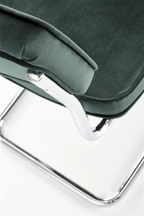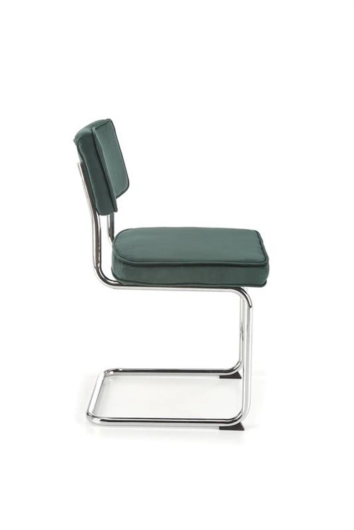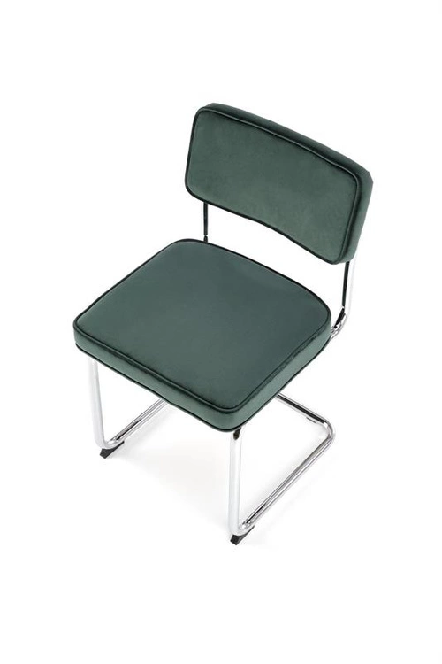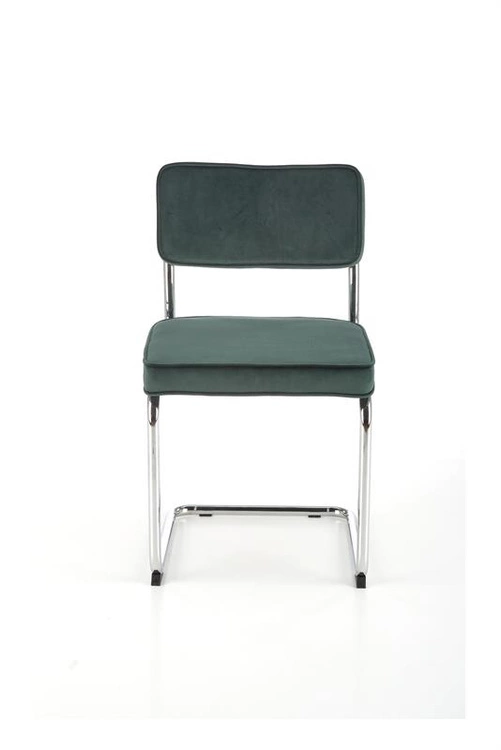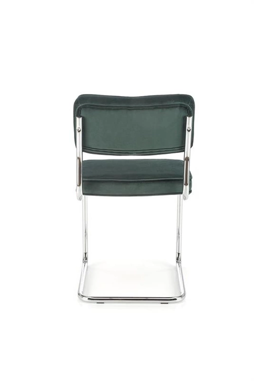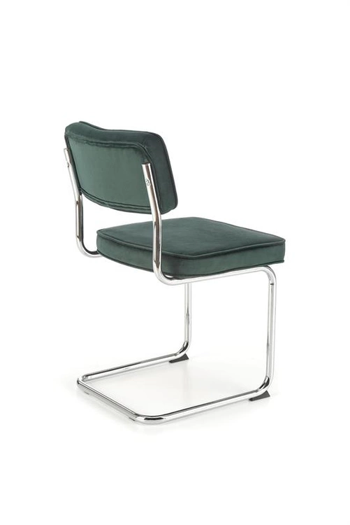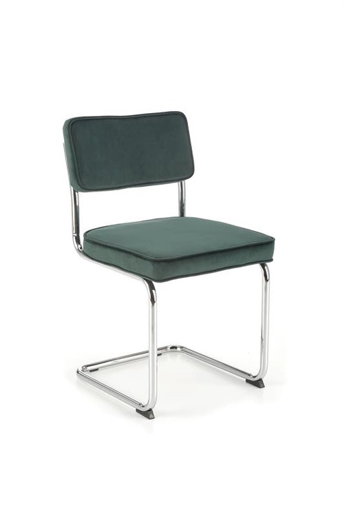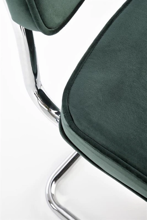 - Krzesło K510 w kolorze ciemnozielonym to połączenie luksusowej tkaniny velvet i eleganckiej, chromowanej podstawy. Stylowy wygląd oraz wygodne siedzisko czynią je idealnym wyborem do jadalni, salonu lub biura.
