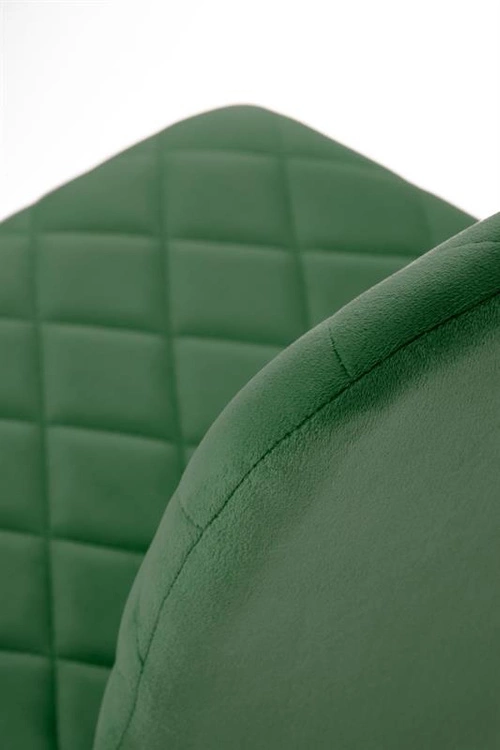 Krzesło K525 w kolorze ciemnej zieleni to połączenie wyrafinowanego stylu i komfortu użytkowania. Jego miękka tapicerka z tkaniny velvet zachwyca eleganckim połyskiem i przyjemną w dotyku fakturą, tworząc luksusowy akcent w każdym wnętrzu. Głęboki, zielony odcień dodaje aranżacjom szlachetności i spokoju, idealnie komponując się z elementami złota, czerni czy naturalnego drewna.