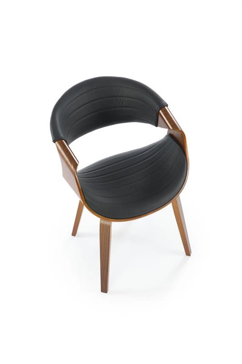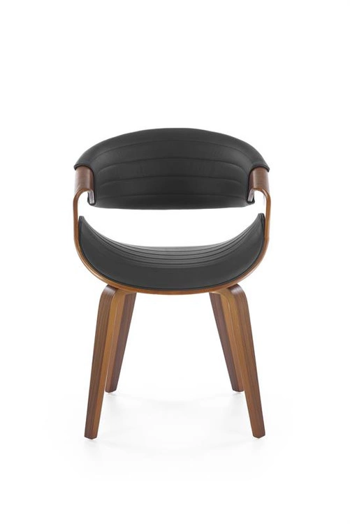 - Krzesło K544 w kolorze czarnym z orzechowym wykończeniem to stylowy mebel o wyjątkowym charakterze. Połączenie giętej sklejki i eco skóry tworzy elegancką, nowoczesną formę idealną do jadalni, salonu lub biura.