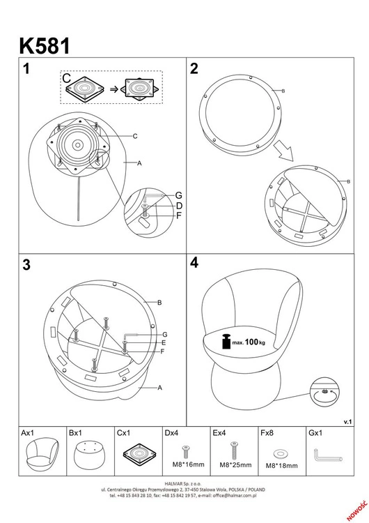 Regularnie sprawdzaj stan krzesła/fotela/pufy, aby upewnić się, że wszystkie śruby i elementy mocujące są dobrze dokręcone.