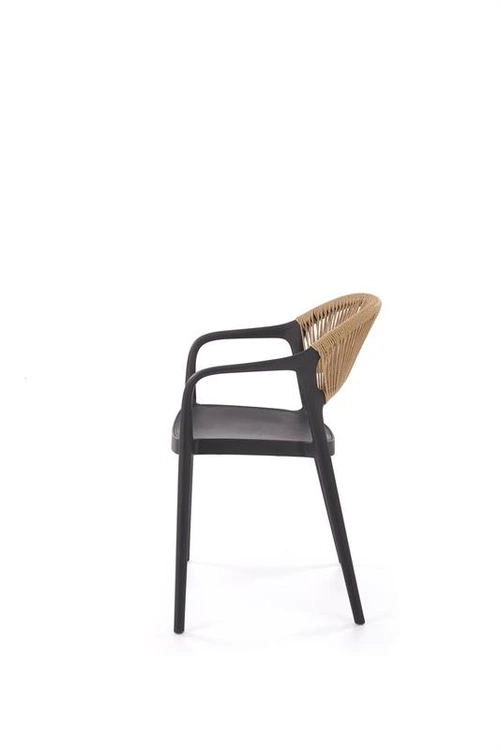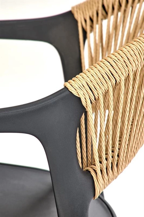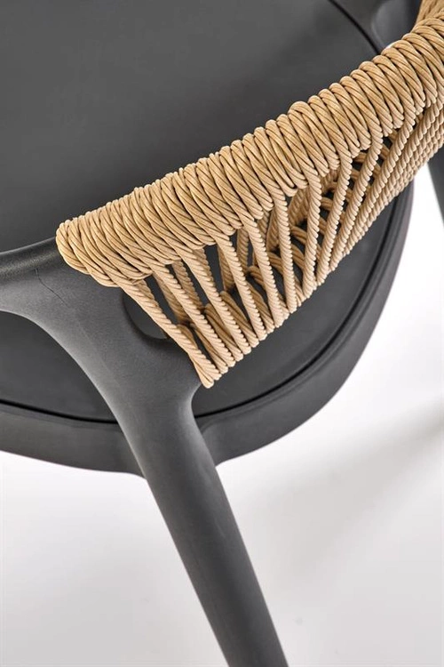 - Krzesło K582 w kolorze czarny / naturalny to połączenie nowoczesnej formy i naturalnych akcentów. Wykonane z polipropylenu i dekoracyjnego sznurka, stanowi stylowy i wygodny element wystroju jadalni, kuchni lub salonu.