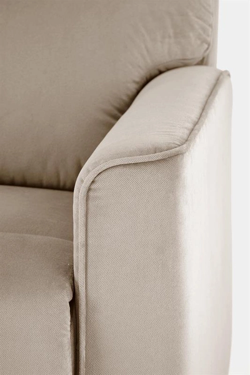 Miękka tapicerka z przyjemnej w dotyku tkaniny w odcieniu beżowym nadaje fotelowi przytulnego charakteru, a jednocześnie pięknie komponuje się z wnętrzami w stylu nowoczesnym, klasycznym czy skandynawskim. Ergonomiczne oparcie i szerokie siedzisko zapewniają wygodę, a solidna konstrukcja gwarantuje trwałość i stabilność przez lata użytkowania.