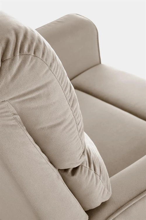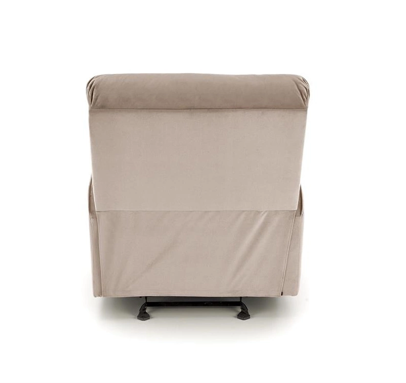 Fotel wypoczynkowy KARIM w kolorze beżowym to propozycja dla osób, które cenią pełen komfort i ponadczasową elegancję. Jego rozkładana konstrukcja pozwala z łatwością zmienić pozycję z siedzącej na półleżącą, dzięki czemu idealnie sprawdza się podczas popołudniowego odpoczynku, czytania lub oglądania telewizji. Dodatkowo model wyposażony został w funkcję kołyski, która pozwala się odprężyć i wprowadza delikatny, uspokajający ruch.