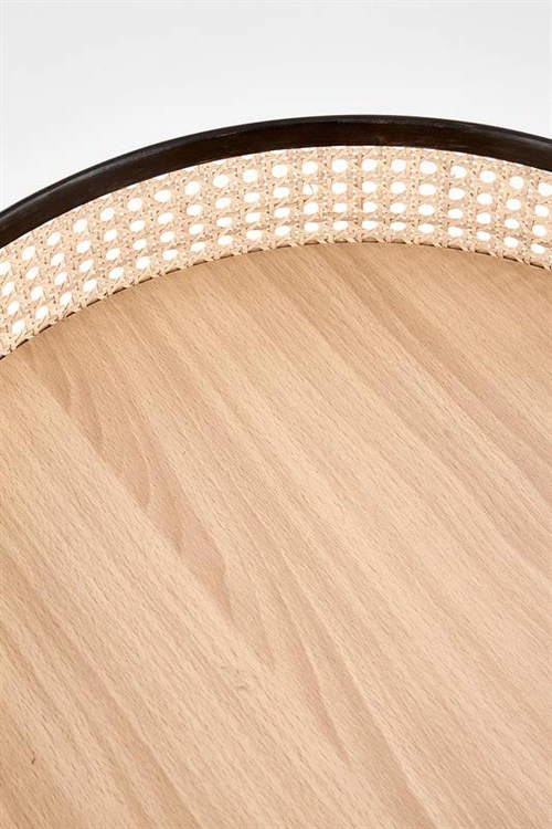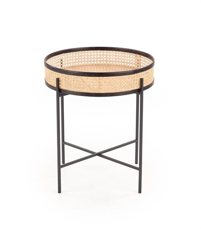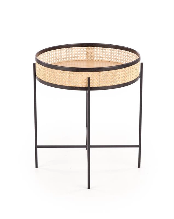 Ława LANIPA w kolorze czarny / rattan naturalny to wyjątkowy mebel, który łączy w sobie elegancję, lekkość i naturalny urok. Okrągły blat wykonany z rattanu naturalnego zachwyca plecioną strukturą i ciepłym odcieniem drewna, wprowadzając do wnętrza przytulny, organiczny klimat. Całość osadzona jest na subtelnej, ale stabilnej podstawie ze stali malowanej proszkowo w kolorze czarnym, która nadaje meblowi nowoczesnego charakteru.