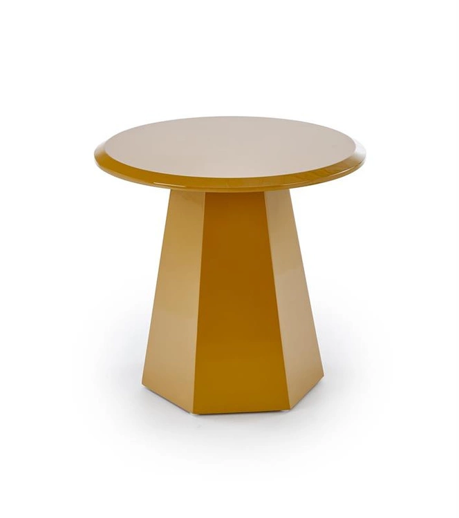 • Ława LOCA w kolorze musztardowym to stylowy mebel o prostej, nowoczesnej formie. Okrągły blat z lakierowanego MDF-u i modny, ciepły odcień żółci tworzą wyjątkowy akcent, który ożywi wnętrze salonu lub sypialni.