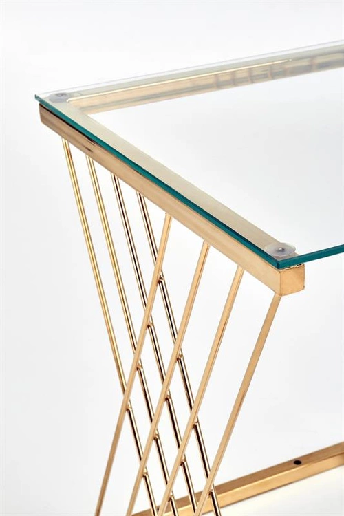 Nowoczesna ława NANCY w kolorze złotym z transparentnym blatem