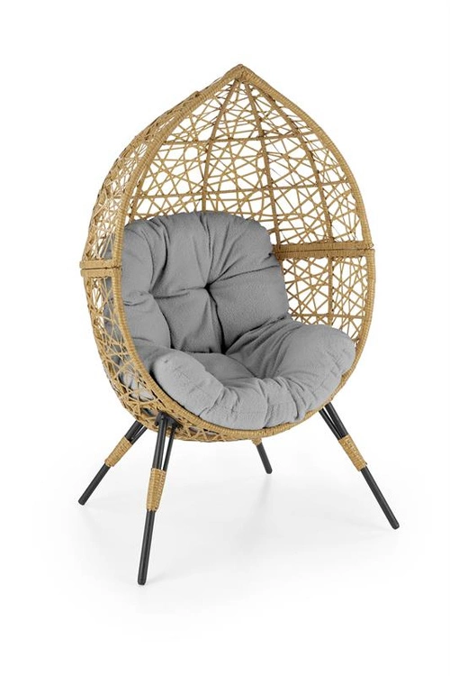 Stylowy fotel ogrodowy OSKAR w kolorze naturalnym z jasnopopielatą tkaniną