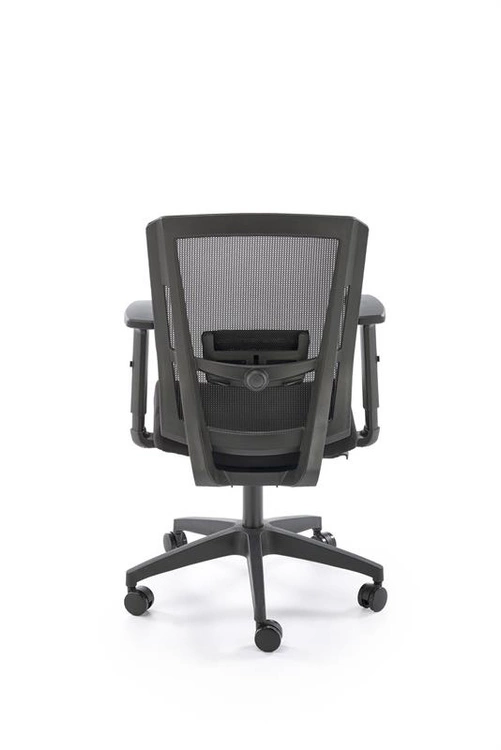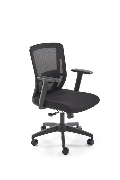 Fotel gabinetowy PAREDES w kolorze czarnym to nowoczesny i ergonomiczny model zaprojektowany z myślą o maksymalnym komforcie podczas długich godzin pracy przy biurku. Połączenie tkaniny i przewiewnej siatki gwarantuje odpowiednią cyrkulację powietrza, a elegancka, czarna kolorystyka nadaje wnętrzu profesjonalnego charakteru.