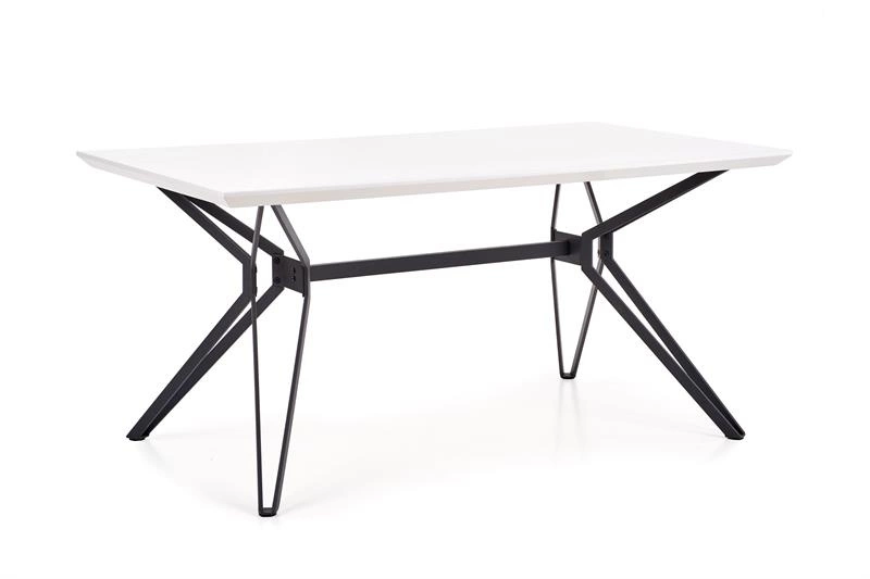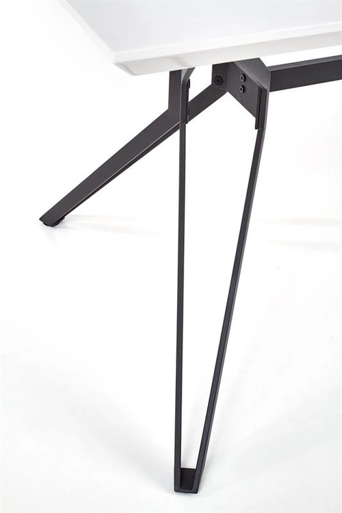 Stół PASCAL w kolorze biało-czarnym to nowoczesna propozycja dla osób ceniących połączenie elegancji i funkcjonalności. Blat wykonany z lakierowanego MDF-u w białym połysku pięknie kontrastuje z czarną, geometryczną podstawą ze stali malowanej proszkowo, tworząc wyrazisty i ponadczasowy design.