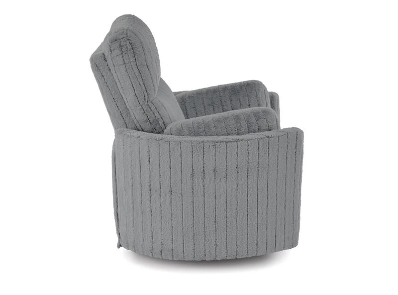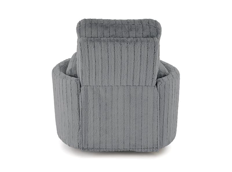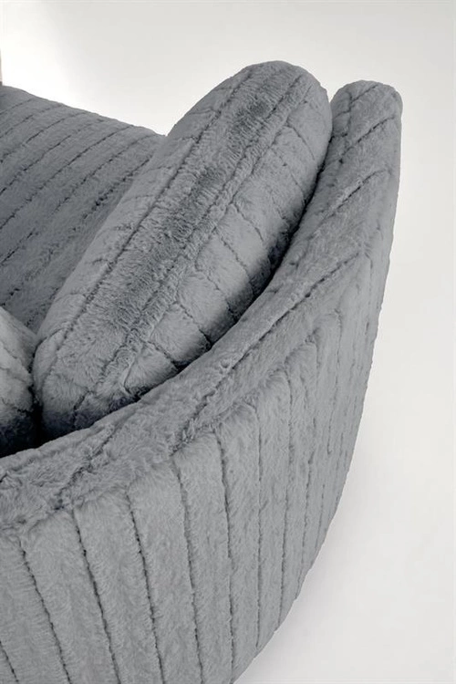Model PEGAS oferuje również funkcję obrotu oraz kołyski, dzięki czemu sprawdza się zarówno jako fotel do czytania, odpoczynku, jak i popołudniowej drzemki. Miękkie siedzisko, profilowane oparcie i szerokie podłokietniki gwarantują wysoki komfort użytkowania, a tapicerka z tkaniny w odcieniu popielatym wprowadza do wnętrza przytulność i nowoczesny styl.