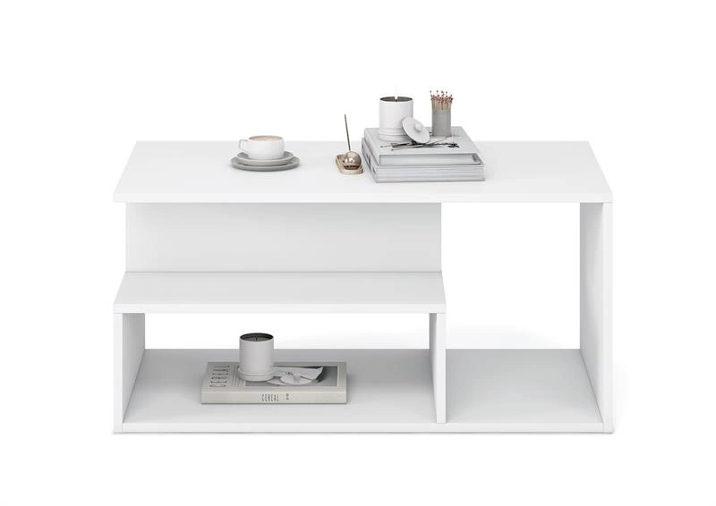 - Ława IVA w białym kolorze to elegancki stolik kawowy o lekkiej i ponadczasowej formie. Jasna barwa optycznie powiększa przestrzeń, a solidna płyta laminowana zapewnia trwałość i łatwość w codziennym użytkowaniu.