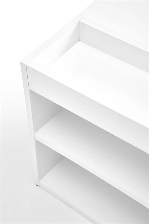 Mebel wykonano z płyty meblowej laminowanej, odpornej na zarysowania i łatwej w utrzymaniu czystości. Gładka, biała powierzchnia optycznie rozjaśnia wnętrze, wprowadzając wrażenie lekkości i świeżości. Ława MURCIA to połączenie estetyki i funkcjonalności, które doskonale sprawdzi się w każdym salonie, pokoju dziennym lub strefie relaksu.