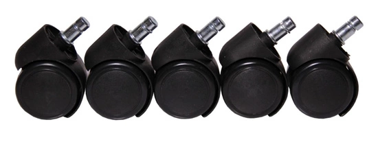 Zestaw składa się z pięciu kółek wyposażonych w standardowy trzpień o średnicy 11 mm, dzięki czemu są kompatybilne z większością popularnych modeli foteli. Solidna konstrukcja gwarantuje długą żywotność i wysoką odporność na codzienne użytkowanie.