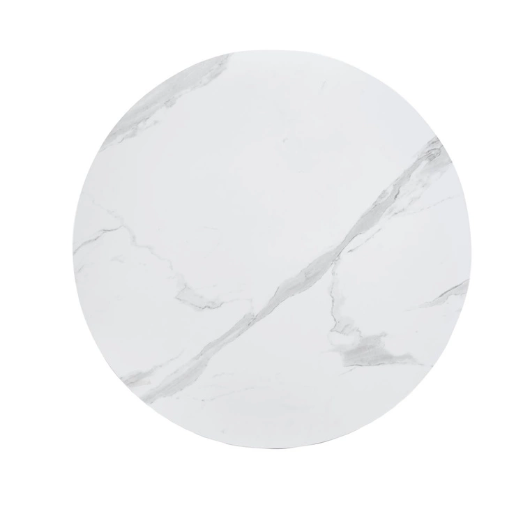 Ława okrągła FI80 w kolorze biały marmur / dąb to połączenie elegancji i wyjątkowego wzornictwa. Jej blat wykonany z MDF pokryto laminatem imitującym biały marmur, co dodaje całości szyku oraz subtelnego, luksusowego akcentu. Gładka powierzchnia jest odporna na codzienne użytkowanie i łatwa w pielęgnacji, dzięki czemu świetnie sprawdzi się w salonie lub strefie wypoczynkowej.