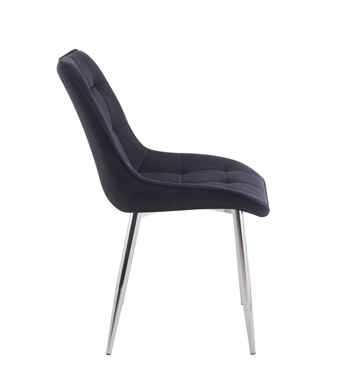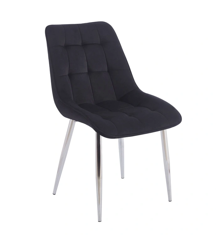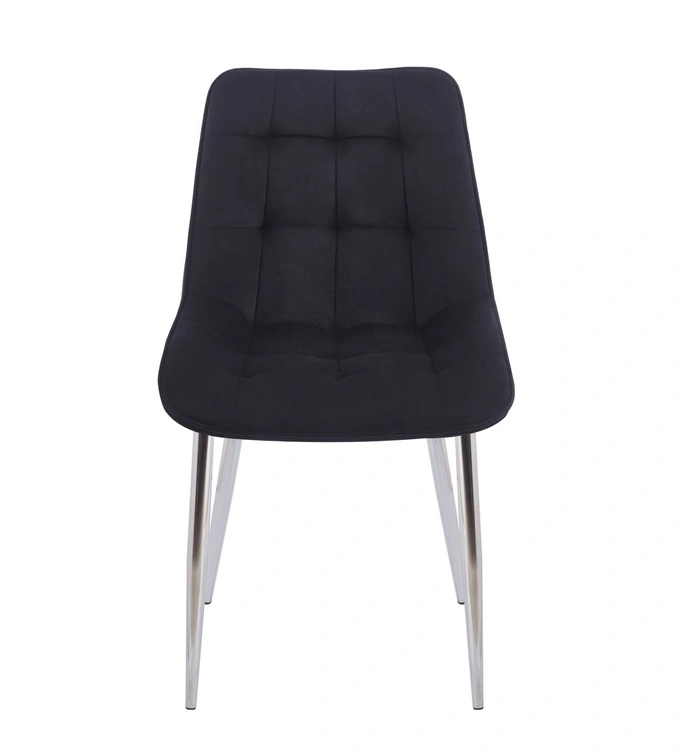 Welurowe Krzesło do jadalni IVO czarne ze srebrnymi nogami
