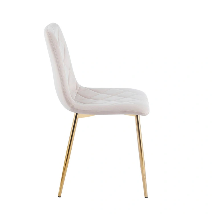 Krzesło welurowe ADEL w beżowym kolorze to połączenie subtelnej elegancji, nowoczesnej formy i wygody użytkowania. Tapicerka wykonana z wysokiej jakości weluru Davis Riviera 06 jest miękka, przyjemna w dotyku i prezentuje się wyjątkowo lekko oraz świeżo, rozjaśniając wnętrze. Odpowiednio wyprofilowane siedzisko i oparcie zapewniają komfort nawet podczas dłuższego siedzenia, a ergonomiczna forma sprzyja wygodnej pozycji przy stole. Smukłe, chromowane nogi w złotym wykończeniu podkreślają luksusowy charakter krzesła i dodają mu wyrafinowanego wyglądu, jednocześnie zapewniając stabilność całej konstrukcji. Model ADEL doskonale wpisuje się w eleganckie i nowoczesne aranżacje.
