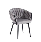 Welurowe krzesło glamour ROSA 2 | szara plecionka, czarny stelaż