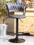Hoker obrotowy pleciony regulowany ROSA 1 szary welur na czarnej nodze