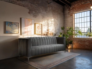 Sofa MONTY III to elegancka i stylowa sofa o nowoczesnym designie, z pionowymi przeszyciami i aksamitną tapicerką. Idealna do salonu, sypialni czy biura. Wysoka jakość wykonania i komfort użytkowania idą tu w parze z niebanalną estetyką.