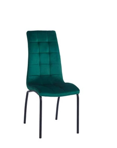 Krzesło CORSO B w zielonym welurze z czarnymi, prostymi nogami to połączenie wyjątkowego designu z elegancją. Przeszyte kwadratowym wzorem welurowe siedzisko nadaje mu wyjątkowego charakteru, idealnie współgrając z minimalistyczną formą nóg.