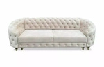 Kanapa LUCILLE 3-osobowa to połączenie stylu glamour, eleganckich pikowań i nowoczesnej funkcjonalności. Wyposażona w wygodną funkcję spania typu DL i pojemnik na pościel, łączy luksusowy wygląd z codzienną praktycznością.